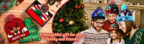 Czapka XBEANIE ma wzór świątecznego jelenia i bałwanów oraz posiada światła LED, które spełniają świąteczne potrzeby i wyglądają pięknie