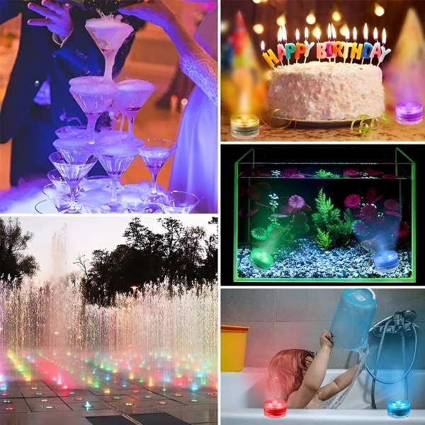 Żadnych kabli, żadnych iskier! Łatwo popraw atmosferę dowolnego akwarium, pojemnika na wodę lub wiaderka do lodu z łatwością. Te mini-światełka wodne o żywych kolorach elegancko upiększają basen, akwarium, wazon lub dowolny wystrój. Niezależnie od tego, czy organizujesz imprezę, czy cieszysz się spokojnym wieczorem, te wszechstronne lampki RGB natychmiast ożywią Twoje otoczenie.