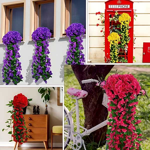 Wnieś odrobinę elegancji do każdej przestrzeni dzięki naszym realistycznym sztucznym wiszącym kwiatom. Wykonane z wykwintnej tkaniny przypominającej jedwab i wysokiej jakości tworzywa sztucznego, te wiszące kwiaty dodają naturalnego uroku Twojemu otoczeniu.