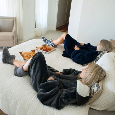 HOODZIE ma długość aż do kolan – to bluza z kapturem i koc w jednym, dzięki czemu zapewni Ci przyjemne ciepło podczas oglądania telewizji, czytania czy popołudniowego relaksu.
