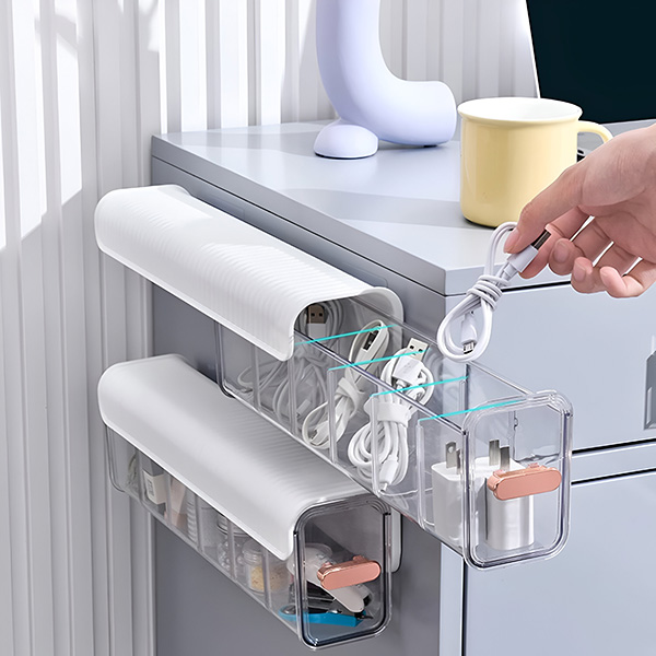 Masz dość gubienia długopisów, ładowarek lub materiałów biurowych? Mocowanie samoprzylepne ORGABIN ułatwia przyklejenie go pod biurkiem lub stołem w celu efektywnego wykorzystania przestrzeni. Kompaktowy rozmiar zapewnia porządek i łatwość znalezienia wszystkich drobiazgów.
