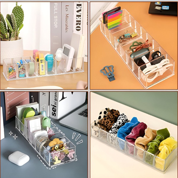 📦 Zestaw zawiera 3 organizery, każdy z 5 regulowanymi przegródkami.