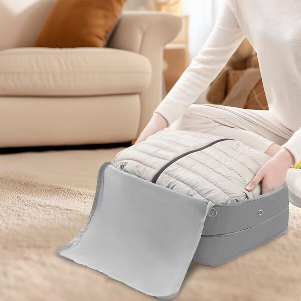 Bez wysiłku kompresuj ubrania, koce i inne rzeczy bez odkurzacza, uwalniając mnóstwo dodatkowego miejsca w walizce lub szafie.