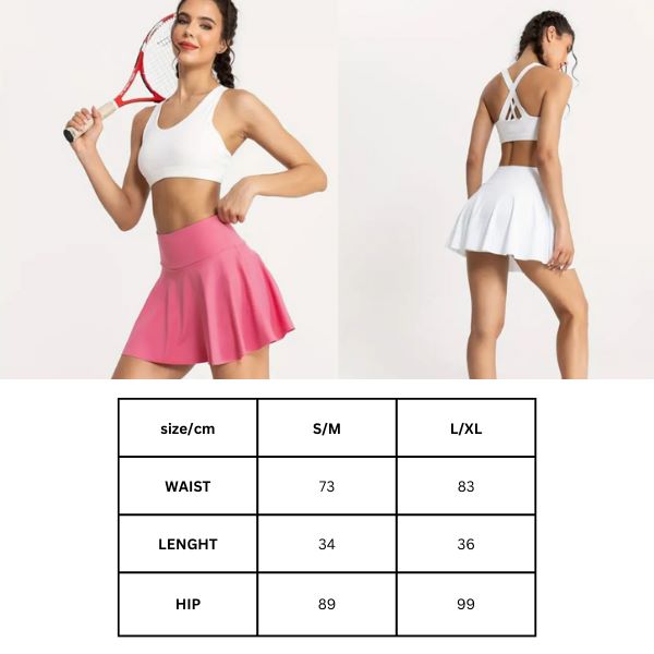 🩱 Spódnica i szorty w jednym – wbudowane wewnętrzne szorty zapobiegają otarciom ud przez cały dzień