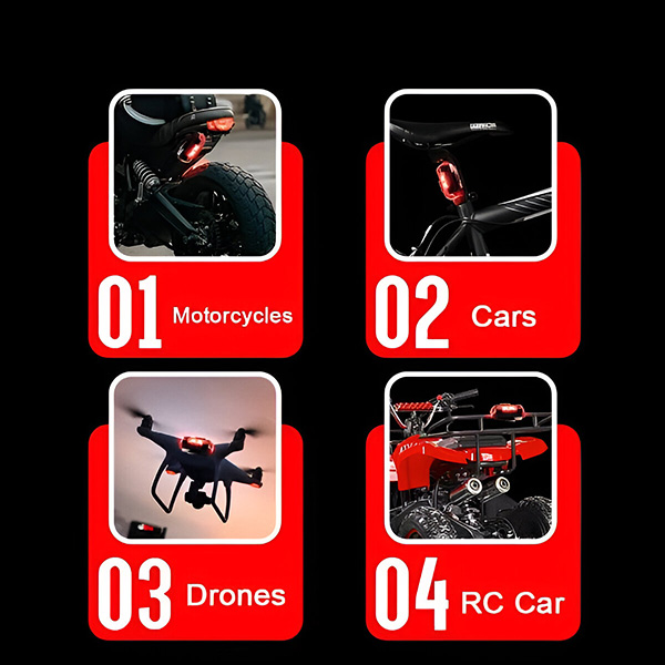 Te światła są niesamowicie wszechstronne i pasują do samochodów, motocykli, rowerów i dronów. Wybierz spośród metod montażu na rzep lub gumowej opasce dla bezpiecznej i prostej konfiguracji. Nie potrzeba skomplikowanych narzędzi ani pomocy profesjonalisty.