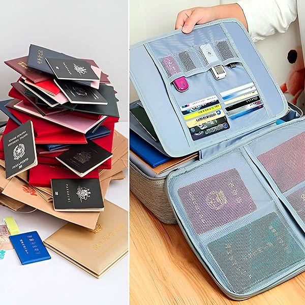 Użyj torby do przechowywania paszportów, planów podróży i potwierdzeń hotelowych, aby podróżować bez kłopotów.