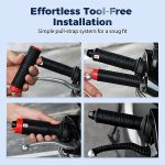 Wystarczy pociągnąć wewnętrzny pasek podtrzymujący, aby w kilka sekund mocno dopasować uchwyt do kierownicy.